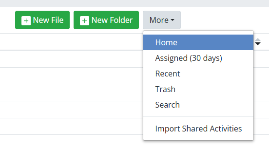 Start on your Activities screen. Select the More dropdown in the middle margin of the page.