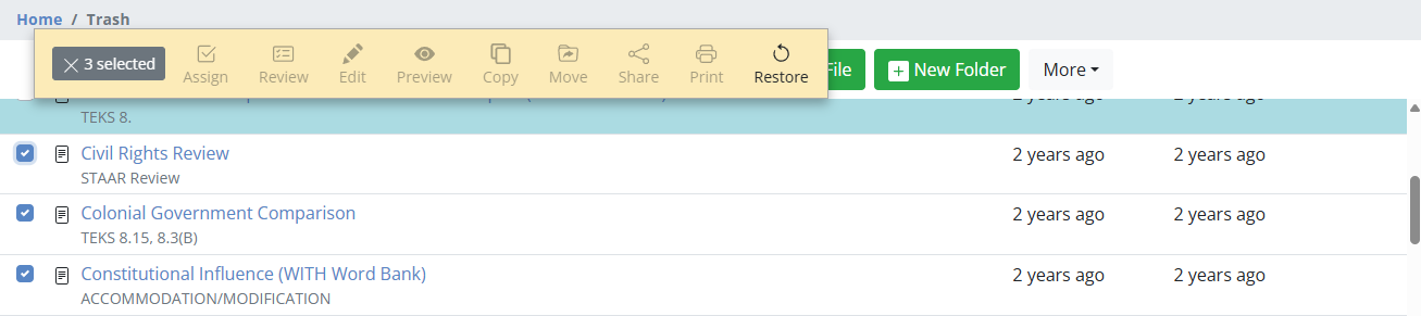It’s as easy as that! Deleted Activities and Assignments are stored safely, so you never have to worry about losing your work — you can always recover it yourself or with our help.