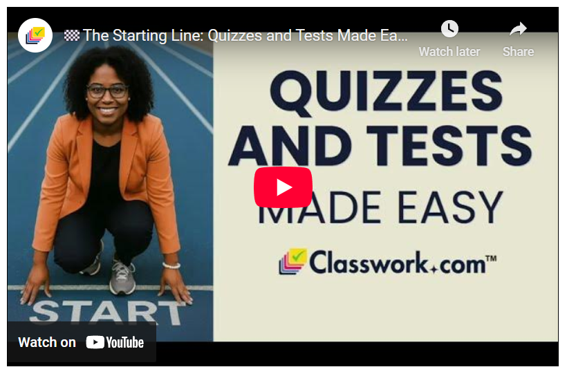 Using the embedded video feature, you can add videos directly to your Activities! Students can watch them in Classwork.com and stop hopping out to YouTube. You can use this feature to attach any video to your Activities. From informational videos found online to videos you record yourself for your students, they’re all supported! Classwork.com does not host the videos, so you do not upload them directly to Classwork.com. Instead you can upload them to a streaming service like YouTube, then embed the video from that streaming service in your Activity.