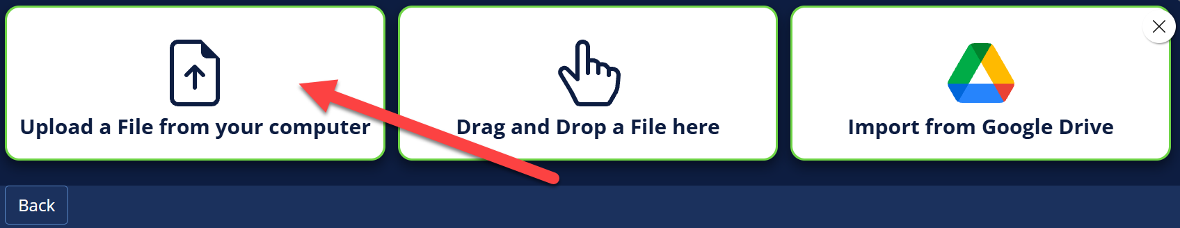 Click Upload a File from your computer and browse to select a document saved on your device.