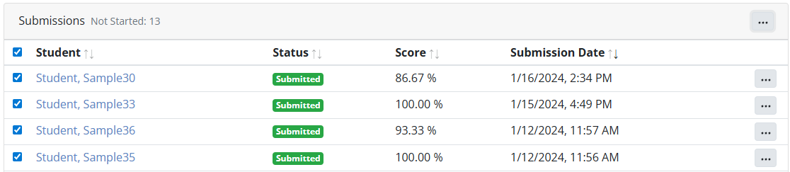 This is where you track student progress, view submissions, and take action on one or more students.