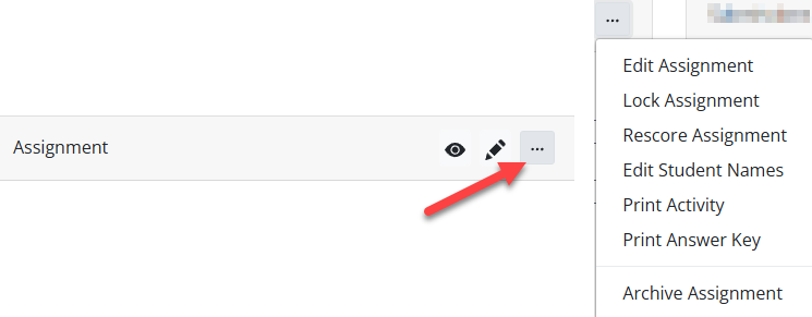 Opens the activity in the editor. This functions the same as the pencil icon. If the activity has already been assigned, it will open in Answer Key Mode.